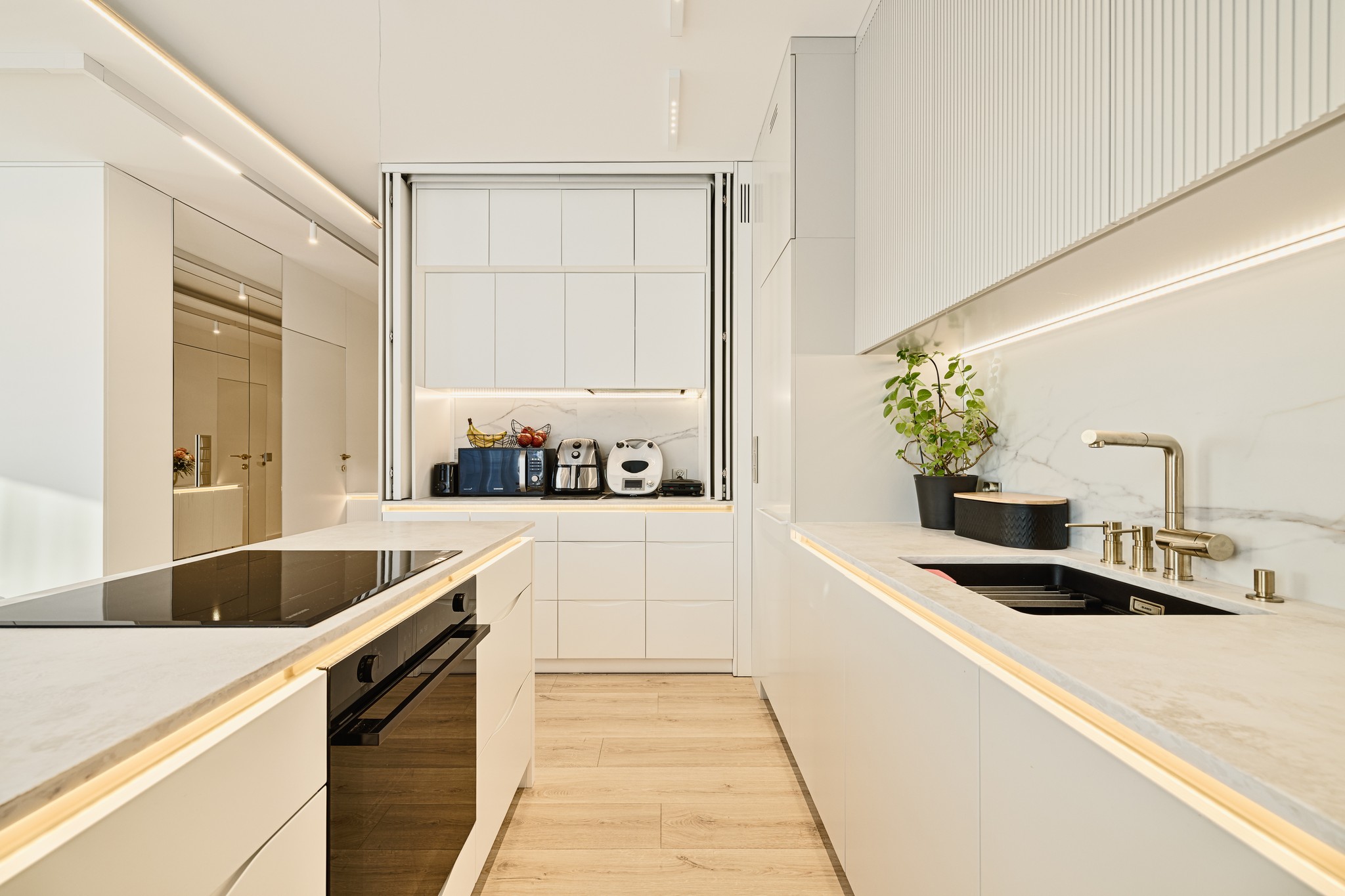 Wybrane projekty z ostatnich miesięcy: kuchnie, zabudowy i garderoby wykonane na wymiar z materiałów premium. Każdy projekt powstał od koncepcji po montaż w naszej pracowni, z dbałością o ergonomię i detale.